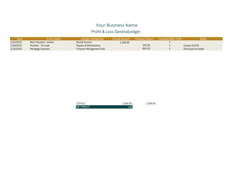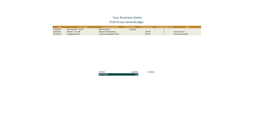 1️⃣ General Ledger Template - Record income, expenses, and transfers — provide clear property profitability and investor reporting