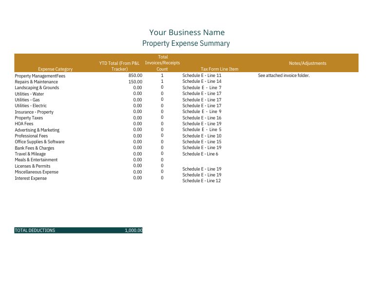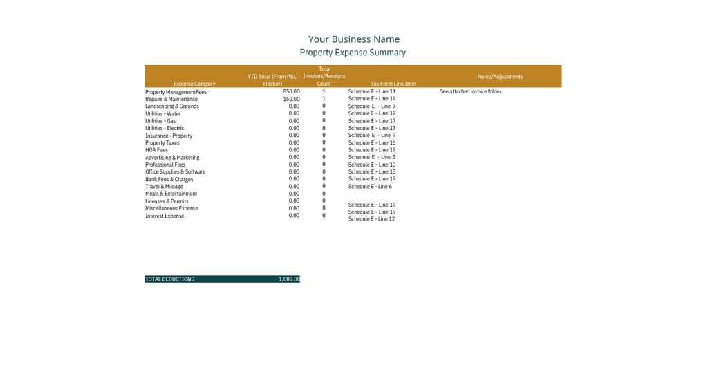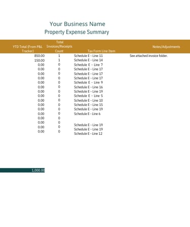 2️⃣ Expense Tracker - A simplified way to categorize and summarize all property-related costs month by month — organized for tax season