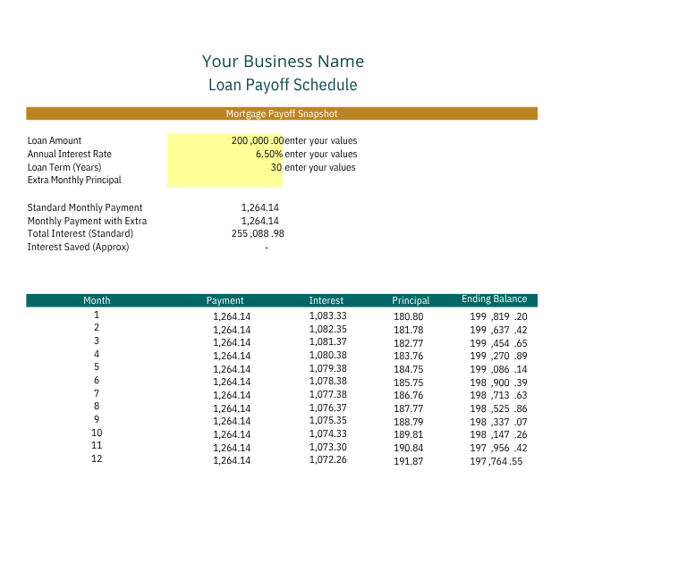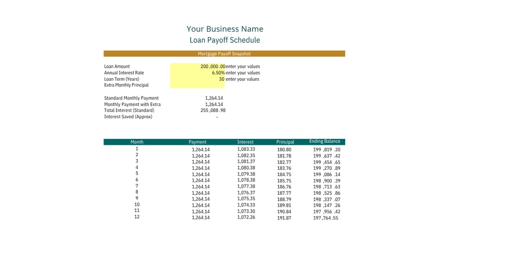 5️⃣ Loan Amortization & Payoff Schedule - Calculate monthly principal and interest, project your loan payoff timeline — identify cash flow possibilities