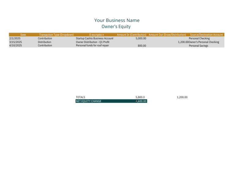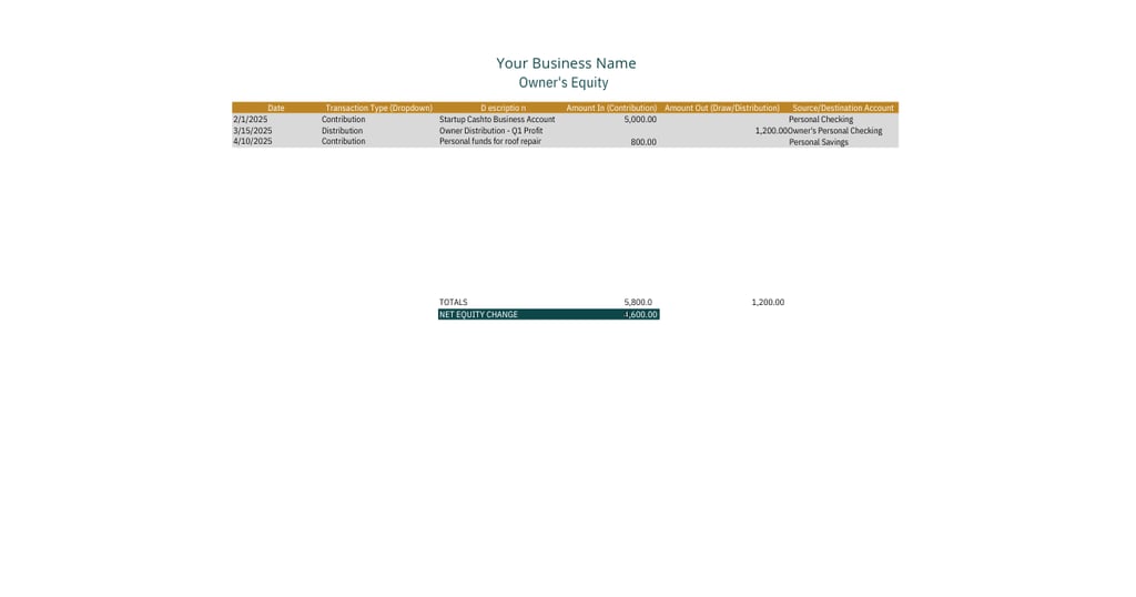 4️⃣ Owner’s Equity Schedule - Track capital contributions, withdrawals, and accumulated earnings for each property or partner — know your worth