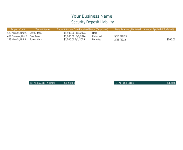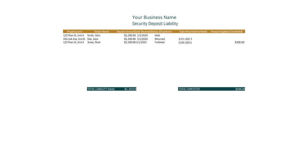 3️⃣ Security Deposit Liability Schedule - Easily monitor deposits held, returned, and forfeited — give transparency to your compliance liabilities